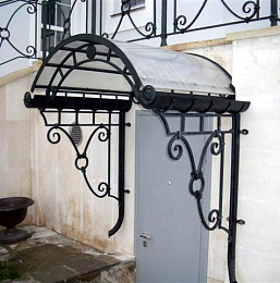Козырек из поликарбоната с элементами ковки. Цена указана за козырек размером 1*1м с полимерным покрытием, рама козырька выполнена из трубы профильной 20*20мм, кованые элементы из квадрата 10мм, зашит листом прозрачного поликарбоната толщиной 10мм, слив из трубы 50*50мм. Стоимость козырька другого размера, монтажа и доставки уточняйте отдельно у менеджеров компании.