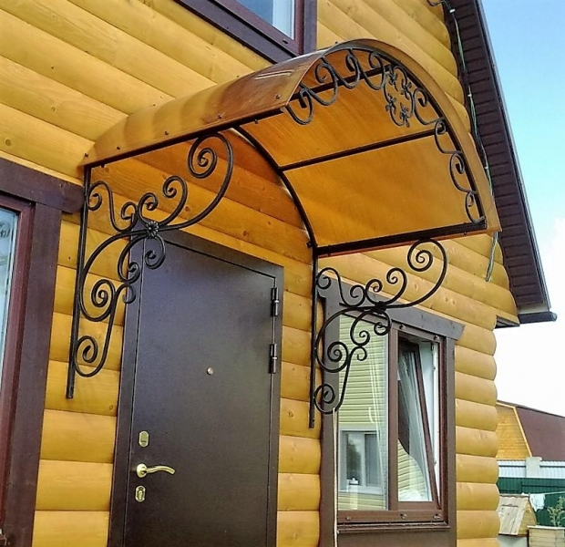 Козырек из листа металла с элементами ковки. Цена указана за козырек размером 1*1м с полимерным покрытием, рама козырька выполнена из трубы профильной 20*20мм, кованые элементы из квадрата 10мм, зашит листом металла толщиной 2мм. Стоимость козырька другого размера, монтажа и доставки уточняйте отдельно у менеджеров компании.