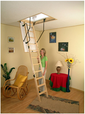 В комплекте: маскировочная рейка, поручень, защитные насадки, деревянный стержень для открывания лестницы