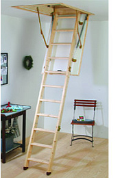 В комплекте: люк из сэндвич-панели, пружинный механизм "короб-люк", короб, трехсекционная лестница с буковыми ступенями, замок люка, штанга для раскладывания лестницы