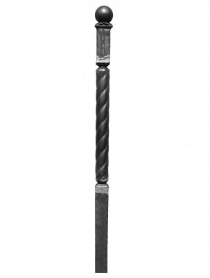 Начальный столб, балясина, сталь. Изготовлен из профильной квадратной и витой трубы. Используется как начальный столб при изготовлении лестничных ограждений, балконов, ворот и других изделий художественной ковки.