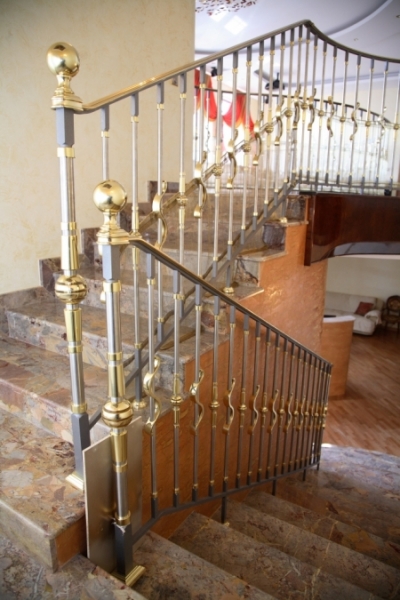 Ограждение с латунными вставками привнесет в ваш интерьер блеск золота и вы увидите вашу лестницу совершенно в ином свете.