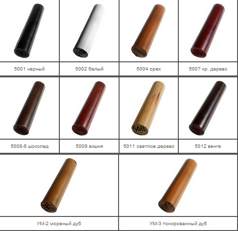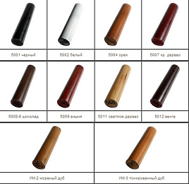 Поручни имитируют текстуру дерева. Широкая цветовая гамма наиболее популярных цветов: несколько оттенков дуба, светлое дерево - сосна и бук, орех, вишня, красное дерево, венге. Цвет поручней от поставки к поставке может меняться.