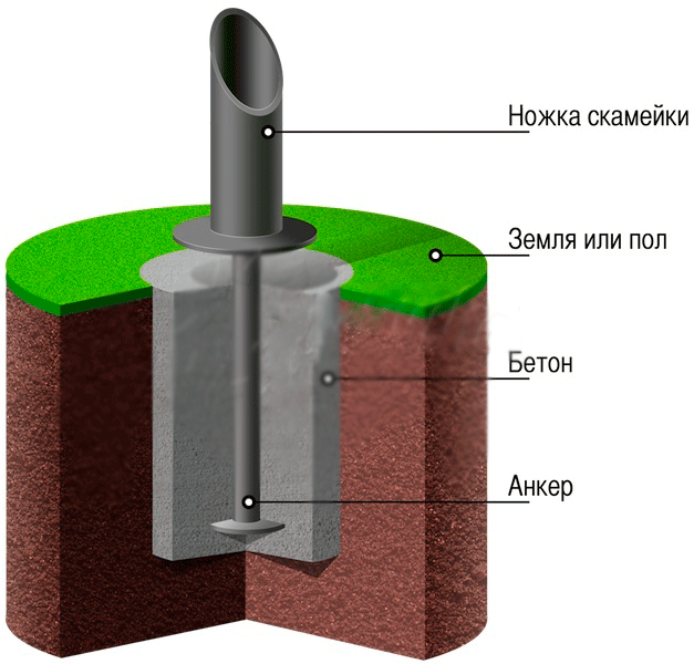 Антивандальное анкерное крепление скамеек и столов