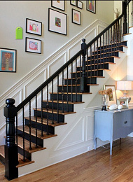 Элегантное сочетание металла и дерева взятое за основу данного ограждения станет изюминкой вашего интерьера и особенно подчеркнет стиль вашей лестницы. В качестве материалов изготовления данного лестничного ограждения могут использоваться: квадрат 10х10, 12х12, 14х14, корзинка, деревянный столб, деревянный поручень из массива дуба, бука, ясеня, березы или сосны. Особенно хорошо данное ограждение смотрится с лестницей на металлическом каркасе, обшитом деревом.