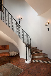 Особенно хорошо смотрятся данные перила с легкими металлическими каркасами, которые Вы можете посмотреть в разделе "Металлические каркасы". Изготавливаются данные перила из металлического прутка как круглого, так и квадратного. Возможно сочетание данных перил с деревянными столбами и поручнем.