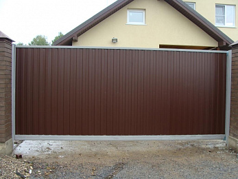 - Заполнение профлистом С8 с одной стороны, окрашенный, стандартных цветов по каталогу RAL: 8017 коричневый, 6005 зеленый, 3005 красный.