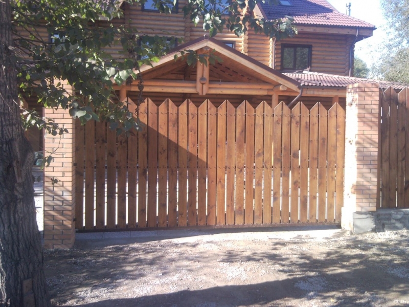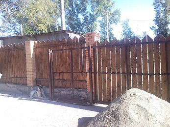 - Каркас ворот, силовая рама и три столба покрашены черной краской по металлу.