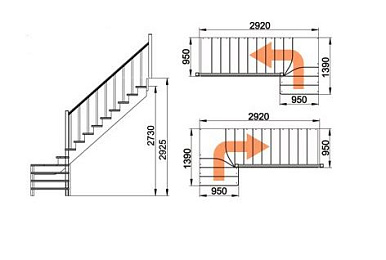 Лестница Высота от пола нижнего этажа до пола верхнего этажа: 2925 мм