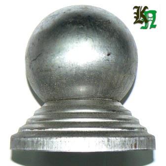 Навершие сталь, штамповка. Способ крепления - электросварка, газосварка, полуавтомат. Используется при изготовлении кованых ограждений, на начальный столб лестничных перил, на кованых кроватях и других изделиях.